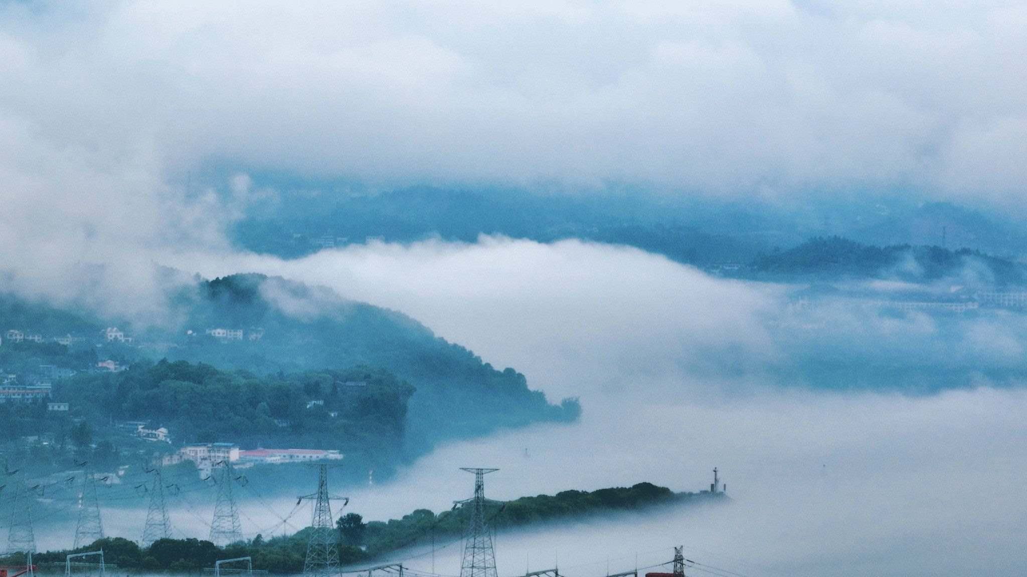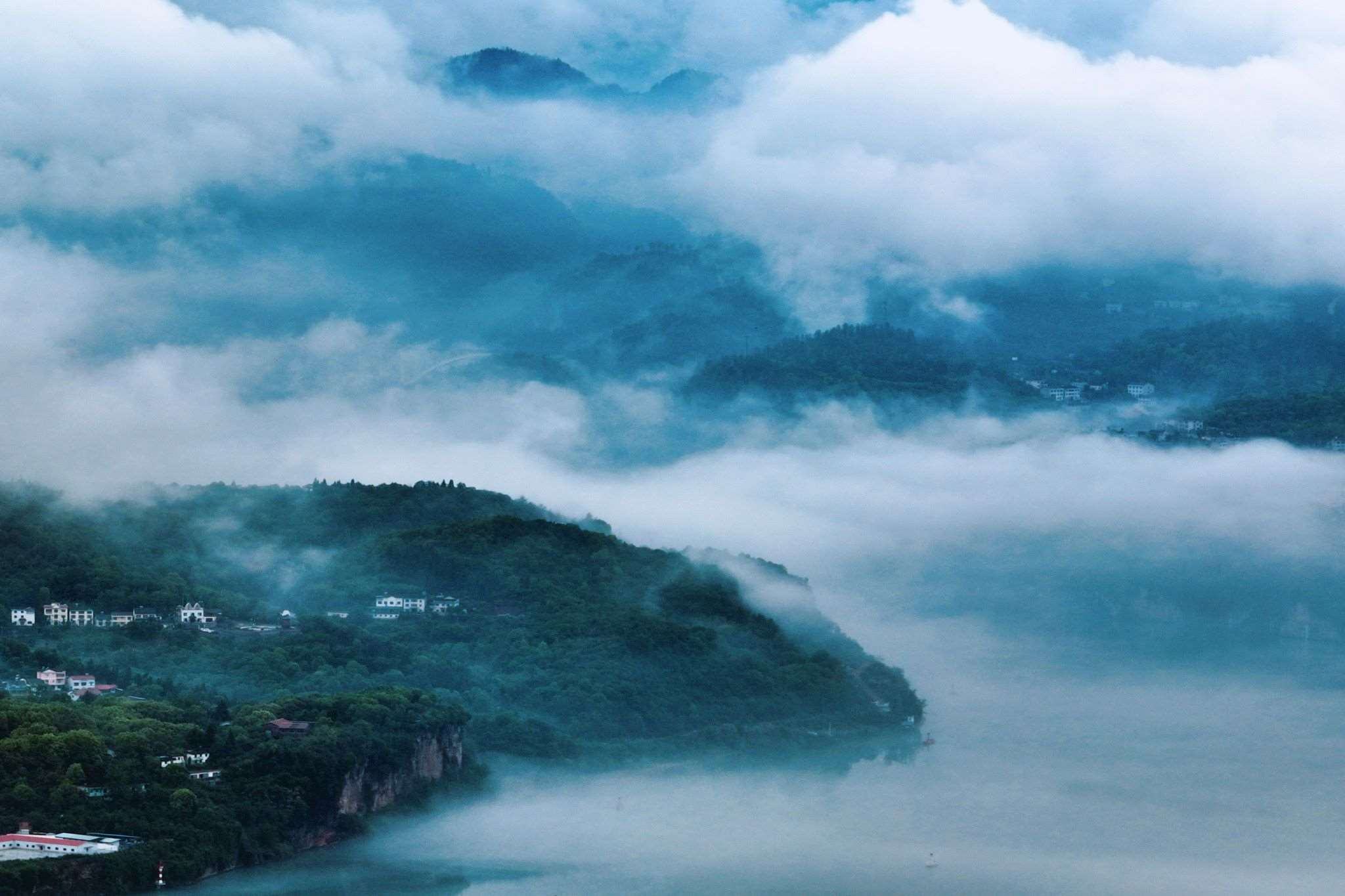 湖北宜昌:雨后長江沿岸薄霧迷蒙