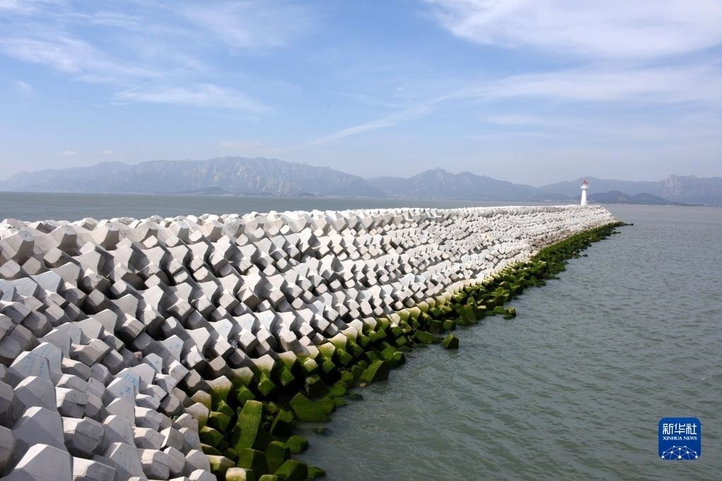 5月6日拍攝的中國(guó)地質(zhì)調(diào)查局大洋鉆探船北部碼頭防波堤。