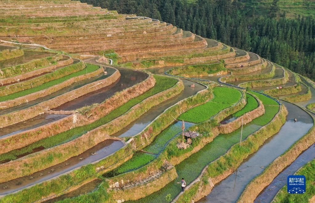 5月6日拍攝的貴州省從江縣加榜鄉(xiāng)加車(chē)村的梯田(無(wú)人機(jī)照片)。