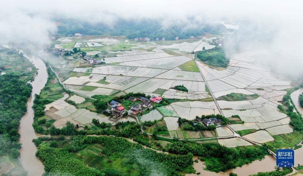 5月6日拍攝的湖南省資興市唐洞街道鏡塘村田園風(fēng)光(無(wú)人機(jī)照片)。