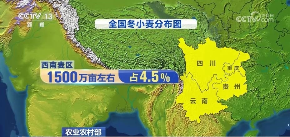 其中,西南麥區(qū)包括重慶、四川、貴州、云南,冬小麥面積1500萬畝左右,占4.5%。