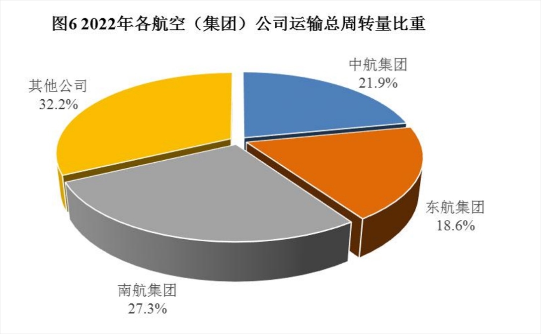 2022年各航空(集團(tuán))公司運(yùn)輸總周轉(zhuǎn)量比重。來(lái)源于2022年民航行業(yè)發(fā)展統(tǒng)計(jì)公報(bào)