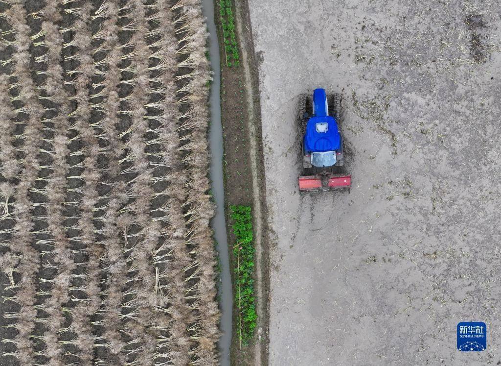 5月9日,四川省邛崍市桑園鎮(zhèn)農(nóng)民駕駛拖拉機進行打漿作業(yè)。