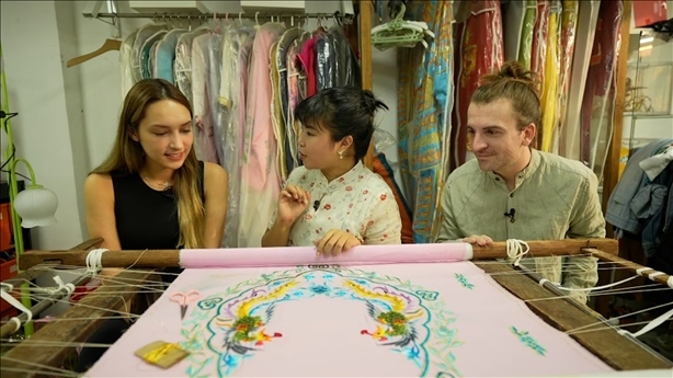 “老板,我是來(lái)做戲服模特”“我來(lái)考察非遺文化項(xiàng)目”美國(guó)的潘明花和意大利徐天佑一起來(lái)到狀元坊戲服工廠,戲服刺繡傳承人何鳳婷熱情地講述著戲服刺繡的歷史、制作工序、角色樣式,也讓他們親自體驗(yàn)了刺繡。潘明花驚嘆于刺繡工藝遠(yuǎn)比想象中要復(fù)雜得多。他們穿著戲服走近粵劇博物館,深入了解以粵劇為代表的嶺南文化。徐天佑表示戲服刺繡非遺的傳承不僅是技術(shù)工藝的傳承,同時(shí)也是文化的傳承。何鳳婷說(shuō)如何讓更多年輕人喜愛(ài)和關(guān)注這項(xiàng)手藝,如何能繼續(xù)傳承下去是目前亟待解決的問(wèn)題。為了讓刺繡與現(xiàn)代審美相結(jié)合,老板將刺繡工藝與年輕人喜愛(ài)的IP玩偶組合,將“激活非遺+創(chuàng)新思路+文化傳承”理念融入到刺繡中,讓這門(mén)手藝更面向大眾,推動(dòng)非遺的創(chuàng)造性轉(zhuǎn)化,提高與現(xiàn)代生活的緊密度,成為融入現(xiàn)代生活中的潮流元素,讓非遺重?zé)ü獠省?/p>