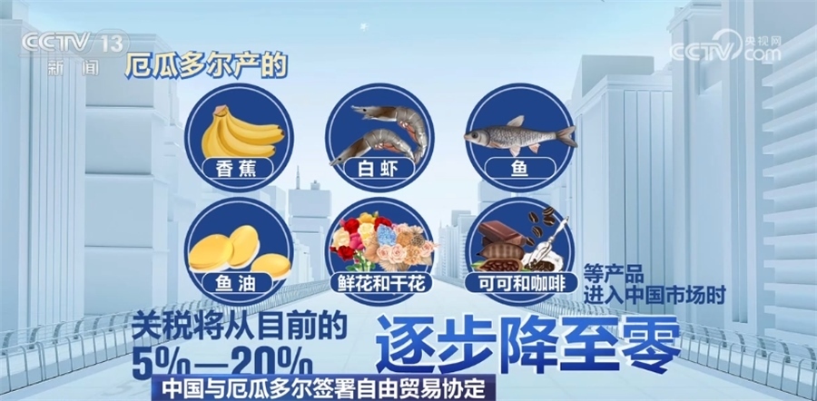 中方實施零關(guān)稅的產(chǎn)品將全面覆蓋厄瓜多爾的主要出口產(chǎn)品。協(xié)定生效后,厄瓜多爾產(chǎn)的香蕉、白蝦、魚、魚油、鮮花和干花、可可和咖啡等產(chǎn)品進(jìn)入中國市場時,關(guān)稅將從目前的5%—20%逐步降至零。