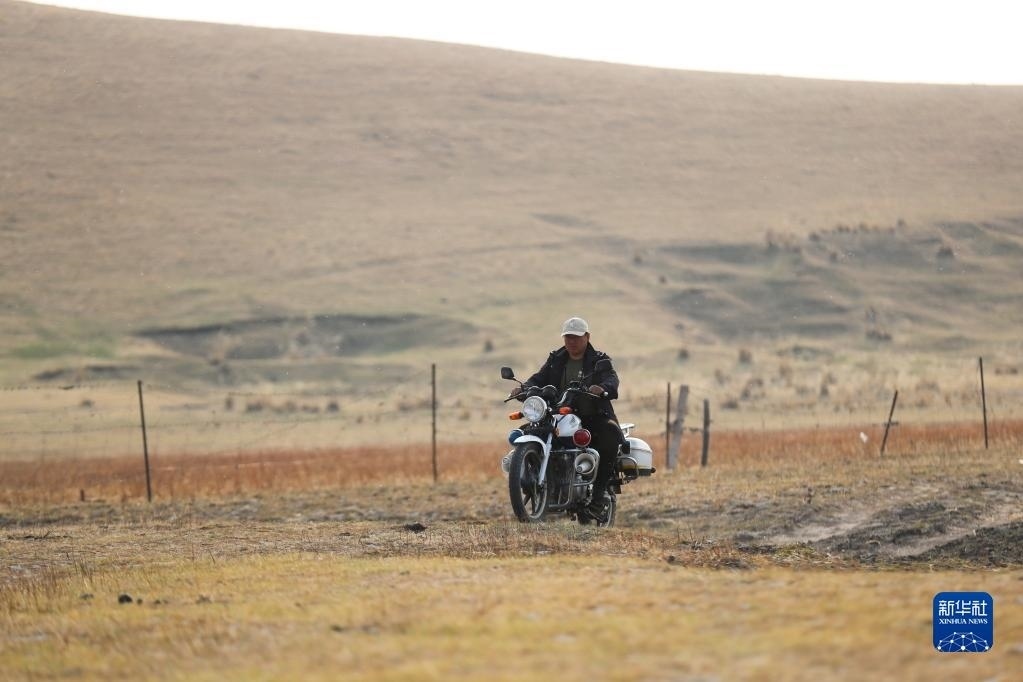 5月10日,徐沃德樂(lè)胡騎摩托在管護(hù)站周圍巡護(hù)。