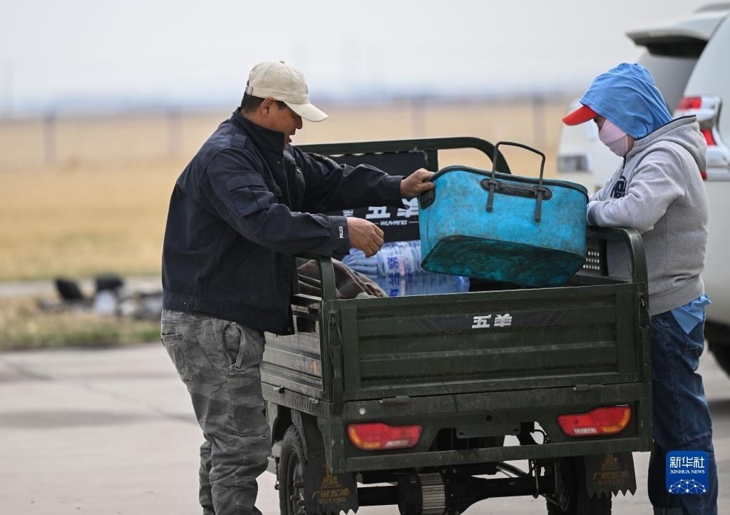 5月11日,徐沃德樂(lè)胡(左)和同事一起為救助候鳥(niǎo)準(zhǔn)備食物。