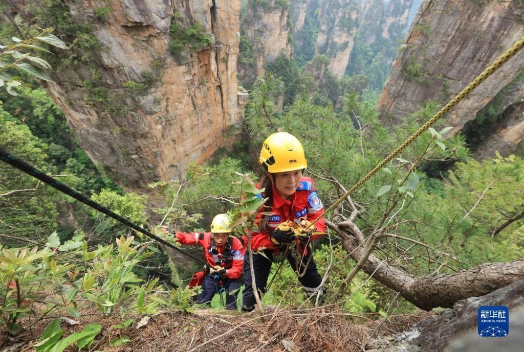 當(dāng)日,湖南省張家界市武陵源區(qū)山地應(yīng)急救援隊(duì)在天子山開展繩索救援適應(yīng)性訓(xùn)練的同時(shí),義務(wù)撿拾叢林中的飲料瓶、塑料袋等垃圾,以實(shí)際行動(dòng)保護(hù)景區(qū)自然生態(tài)環(huán)境。該救援隊(duì)自2020年成立以來,借助專業(yè)技術(shù)力量義務(wù)為各景區(qū)提供應(yīng)急救援服務(wù),并定期開展撿拾垃圾等公益活動(dòng)。