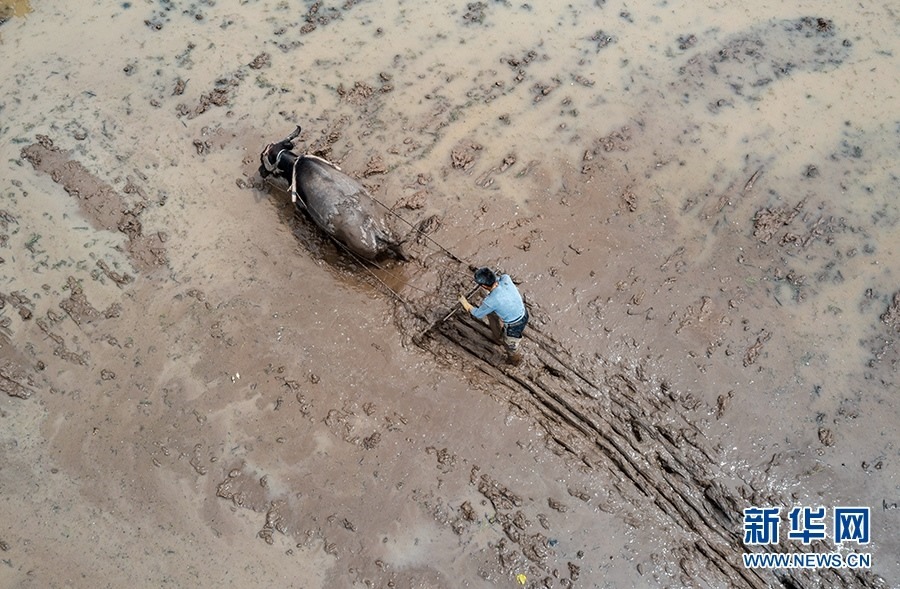 一場雨后,農(nóng)戶抓緊時間犁地。新華網(wǎng)發(fā)(朱云平 攝)