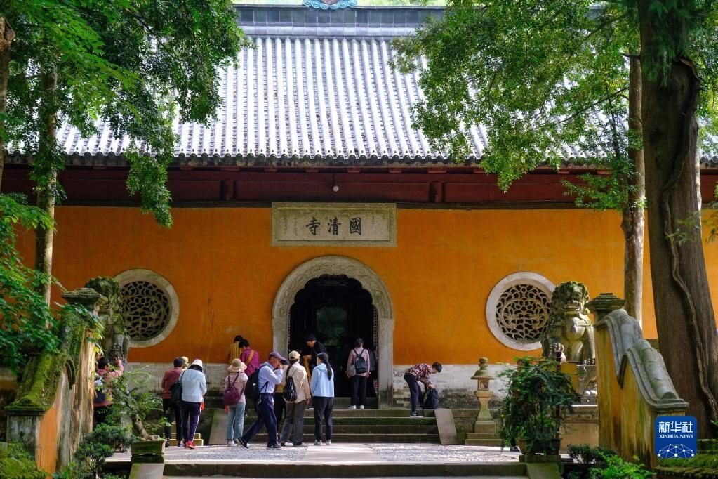 5月16日,游客在天臺(tái)縣國清寺參觀。