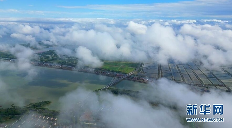 5月17日,雨后,南京市高淳區(qū)的天空掛起了一道絢麗的彩虹。云上彩虹與藍(lán)天白云交相輝映在固城湖上空,形成絕美畫卷。(文靜)