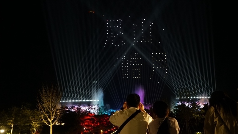 山東曲阜尼山圣境夜游項目內(nèi)的無人機(jī)表演。(受訪單位供圖)
