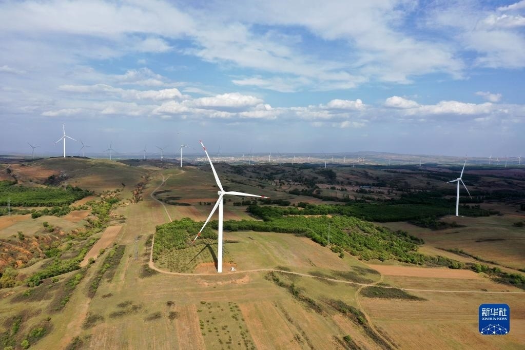 山西省右玉縣南山森林公園一角(5月18日攝,無人機照片)。