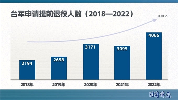 目前,臺(tái)軍實(shí)行以志愿役為主,義務(wù)役為輔的混合兵役制度。臺(tái)軍的主戰(zhàn)部隊(duì)由志愿役人員構(gòu)成,通過招募而來、至少服役4年,這次上熱搜的“申請?zhí)崆巴艘鄣?000多人”主要就是志愿役士兵。