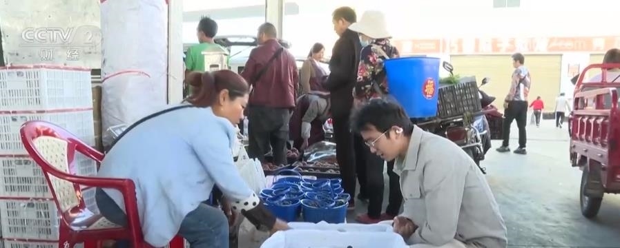 一大早,記者來到云南曲靖的水果批發(fā)市場,看到多家藍(lán)莓批發(fā)商生意火熱。攤位上一筐筐大大小小的藍(lán)莓飽滿圓潤,吸引了不少顧客,賣了多年水果的郭先生告訴記者,目前正是本地藍(lán)莓的豐收季,這些藍(lán)莓將陸續(xù)被稱重、裝車,即將運(yùn)往省內(nèi)外各個零售門市和商超。
