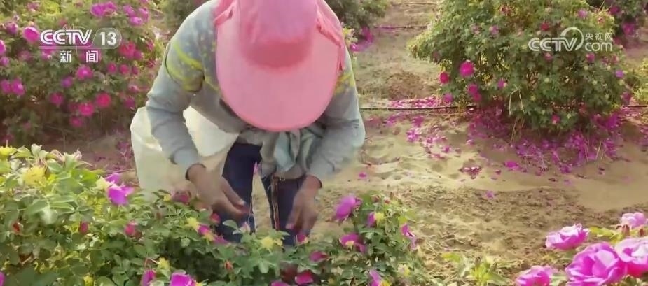 走進新疆和田地區(qū)于田縣的玫瑰種植示范基地,不同品種的玫瑰花競相綻放、爭奇斗艷,村民們正忙著采摘玫瑰,不一會功夫,框子里已經(jīng)裝滿沉甸甸的花朵。