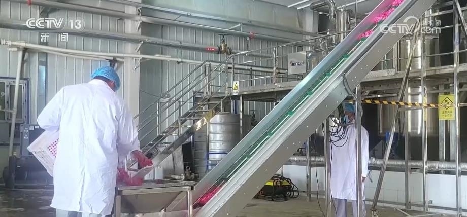 當天采摘下來的玫瑰花會被送往工廠進行加工處理。由于當?shù)貧夂蚋稍镅谉?,為了延長生產周期,工人們會對玫瑰花瓣進行打冷降溫處理,以保持花瓣的新鮮度。