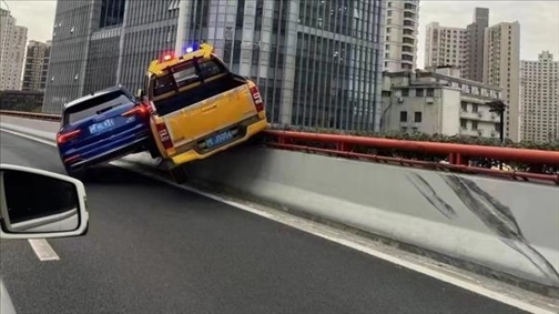 ·5月24日下午,上海內(nèi)環(huán)高架近漕溪立交段兩車碰撞,致其中一輛工程車騎跨在高架護欄上。上海交警回應:涉事兩車在行駛過程中存在互相“斗氣”行為。目前兩車駕駛員已被警方控制,警方將根據(jù)調(diào)查結果依法作出嚴肅處理。