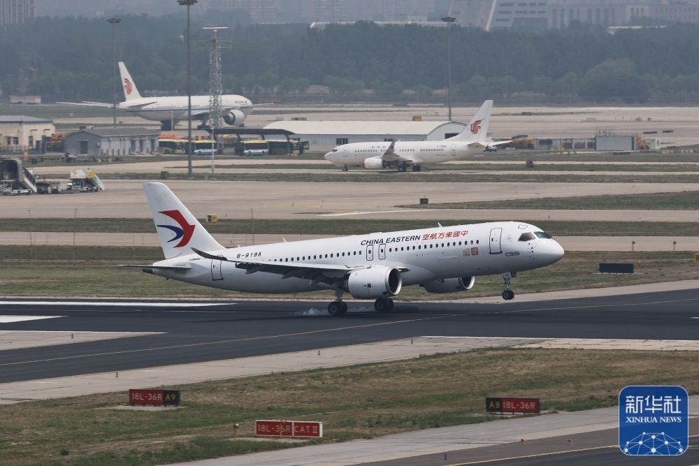 5月28日,C919首個商業(yè)航班東航MU9191在北京首都國際機場平安降落。新華社發(fā)(汪洋攝)