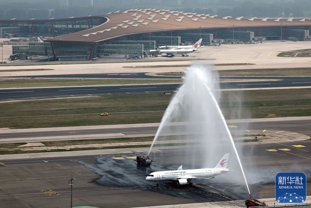 5月28日,C919首個商業(yè)航班東航MU9191飛抵北京首都國際機場。新華社記者鞠煥宗攝