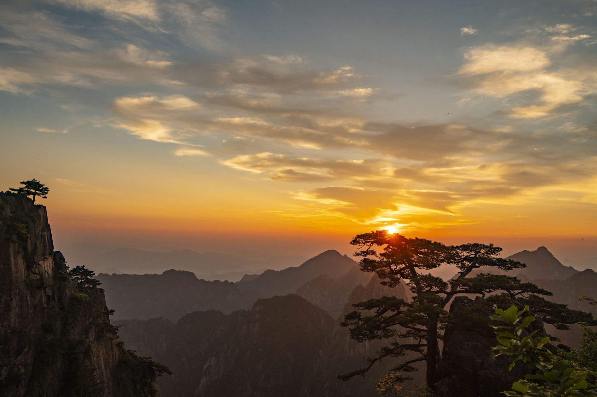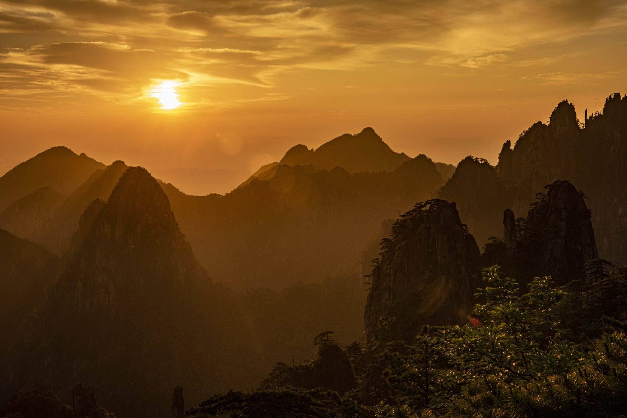 2023年5月29日,安徽黃山,初夏時節(jié),霞光渲染下的奇峰秀色令人流連忘返。視覺中國