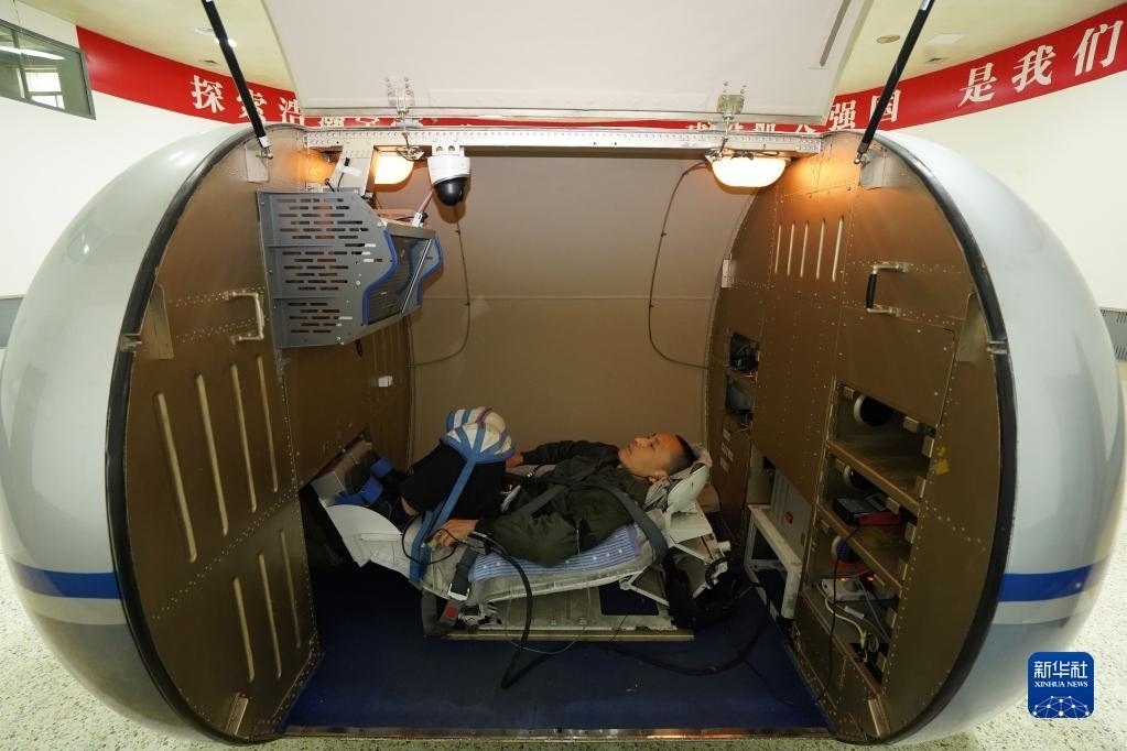 神舟十六號航天員乘組進(jìn)行醫(yī)學(xué)研究項目操作(2023年3月9日攝)。新華社發(fā)(徐部 攝)