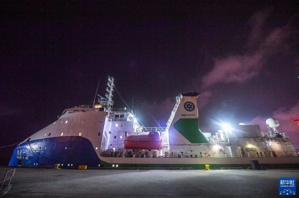 這是在海南三亞拍攝的“探索一號”科考船(5月22日攝)。