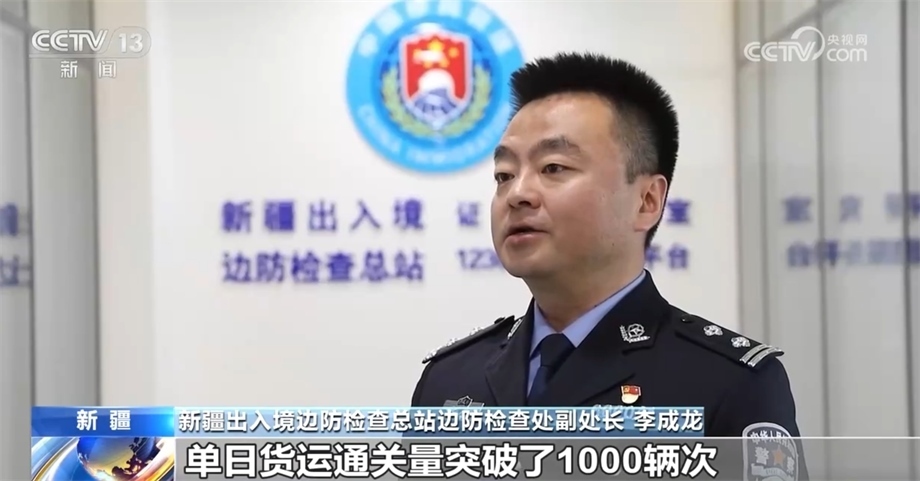 新疆出入境邊防檢查總站邊防檢查處副處長(zhǎng) 李成龍:今年以來,霍爾果斯、阿拉山口等9個(gè)公路口岸通關(guān)量接連突破了歷史峰值,特別是霍爾果斯公路口岸,單日貨運(yùn)通關(guān)量突破了1000輛次。