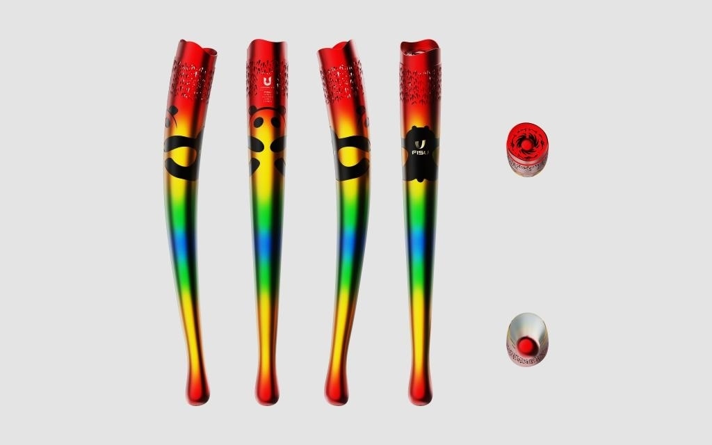 作為大型體育賽事中的一個(gè)重要象征物,火炬無疑是傳遞城市精神的重要窗口。成都大運(yùn)會(huì)火炬“蓉火”取成都的簡稱“蓉”,同時(shí)寓有“融合”“包容”之意。火炬運(yùn)用多彩漸變的大運(yùn)會(huì)主視覺色塊,將朱紅、明黃、翠綠、湖藍(lán)四個(gè)漸變色整合起來,又呈現(xiàn)出成都熱情、活力、時(shí)尚的多彩生活與大學(xué)生的斑斕青春。