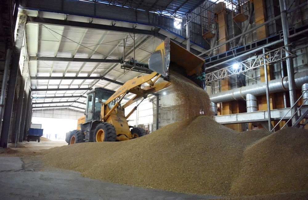 5月30日,在河南省駐馬店市正陽縣大林鎮(zhèn)一家烘干加工合作社,工作人員駕駛車輛將濕麥推入烘干機入料口。新華社記者 郝源 攝