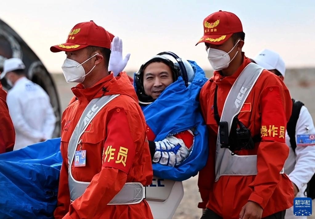 6月4日,神舟十五號載人飛船返回艙在東風著陸場成功著陸。這是航天員費俊龍安全順利出艙。新華社記者 李志鵬 攝