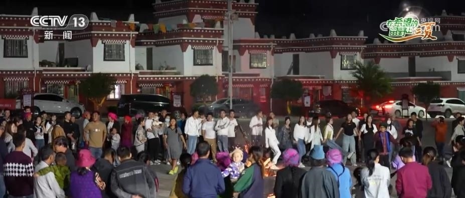從今年五月起,每逢周末和節(jié)假日,坪埡藏族鄉(xiāng)的村民就會(huì)在廣場(chǎng)上舉辦篝火晚會(huì),每次都能吸引一兩千名周邊村鎮(zhèn)村民及游客前來(lái)。伴隨著輕快的歌曲,各族群眾手拉手跳起歡快的舞蹈,歡聲笑語(yǔ)縈繞在夏日的夜空,一片歡樂(lè)祥和的美好氛圍。