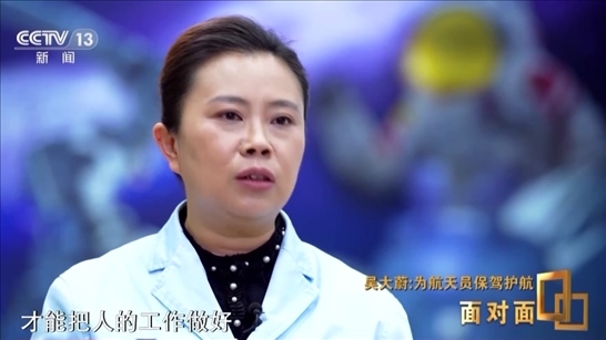 吳大蔚:再不想吃也要好好吃,好好吃好了才能有勁兒好好干活。所以航天員支持中心跟其他支持中心不太一樣,它對的是一個生命,我不是對著一臺機器,看它的指標就可以了,遠遠不是,是要投入大量的感情,把他當成親人一樣,真正用心去做,才能把人的工作做好。