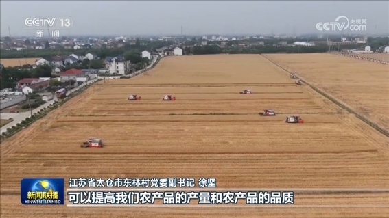 在今年的麥?zhǔn)找痪€,更多的綠色生產(chǎn)模式正在推廣。江蘇省太倉市東林村引進(jìn)先進(jìn)設(shè)備,把收割后的秸稈加工成高質(zhì)量的牛羊飼料,而牛羊產(chǎn)生的糞肥經(jīng)過發(fā)酵后制成有機(jī)肥拋撒還田,實(shí)現(xiàn)種養(yǎng)循環(huán)。