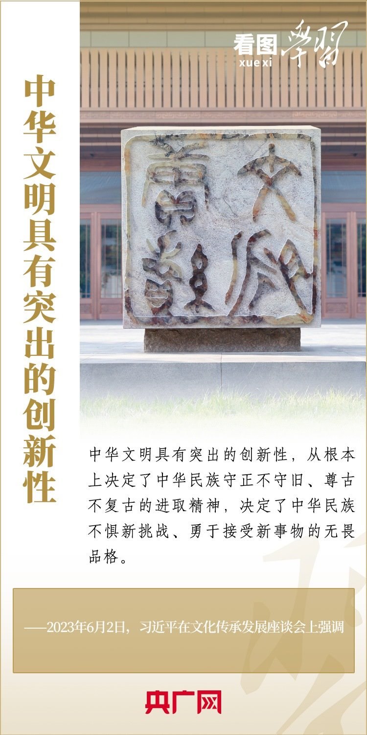 6月2日,習近平總書記在北京出席文化傳承發(fā)展座談會并發(fā)表重要講話,強調中國文化源遠流長,中華文明博大精深。只有全面深入了解中華文明的歷史,才能更有效地推動中華優(yōu)秀傳統(tǒng)文化創(chuàng)造性轉化、創(chuàng)新性發(fā)展,更有力地推進中國特色社會主義文化建設,建設中華民族現代文明。會上,總書記全面、深刻地總結了中華文明的五個突出特性。一起來學習!