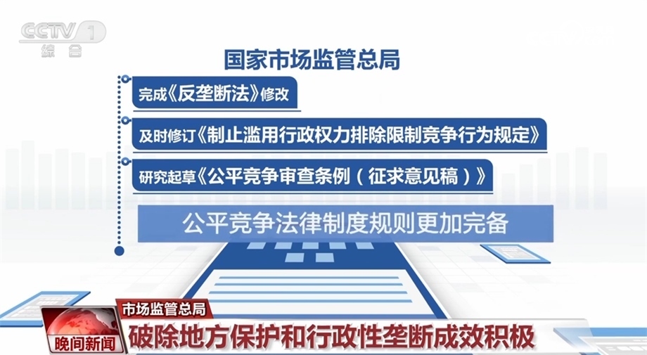 在破除地方保護和行政性壟斷方面,國家市場監(jiān)督管理總局相關(guān)負責(zé)人表示,市場監(jiān)管總局完成了《反壟斷法》修改,及時修訂《制止濫用行政權(quán)力排除限制競爭行為規(guī)定》,研究起草了《公平競爭審查條例(征求意見稿)》,公平競爭法律制度規(guī)則更加完備。