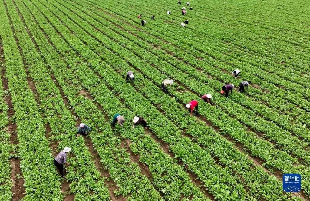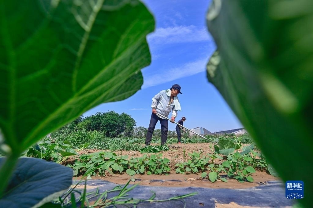 6月5日,在云南省麗江市玉龍納西族自治縣黃山街道長(zhǎng)水社區(qū),菜農(nóng)在田里勞作。