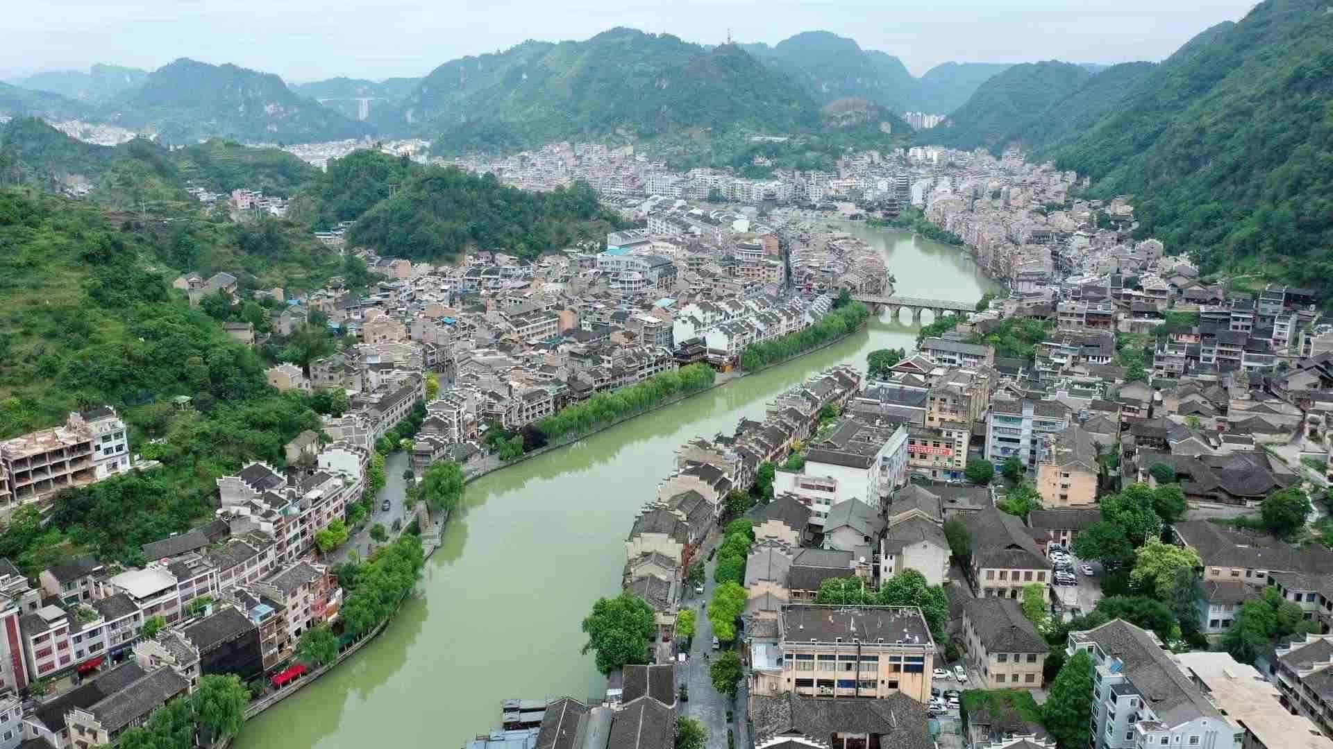 2023年6月7日,航拍貴州鎮(zhèn)遠(yuǎn),舞陽(yáng)河穿城而過。