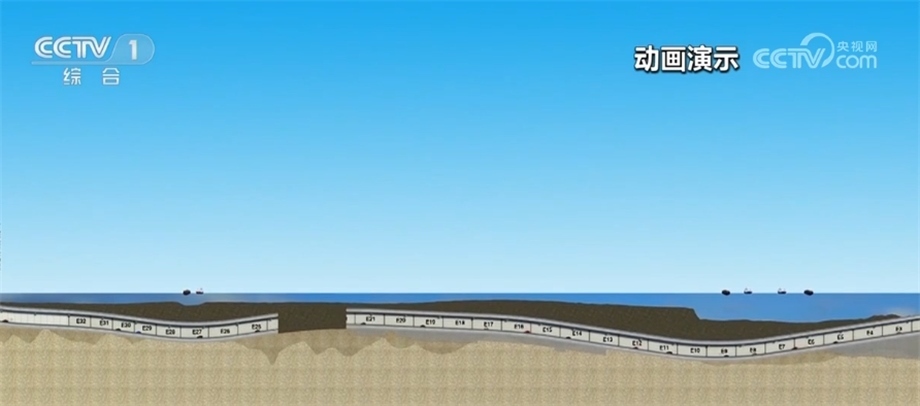 總臺央視記者 李偉代:我身后就是深中通道西人工島,它是深中通道橋隧轉換的關鍵構造;從這里開始,深中通道將從橋梁部分轉入全長6845米海底隧道部分,未來汽車將從這里駛入海底隧道,最深將在海底40米的沉管中行駛。