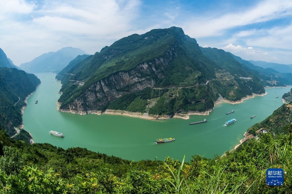 6月10日,船舶從湖北省宜昌市秭歸縣木魚島外沿水域駛過(guò)(無(wú)人機(jī)照片)。