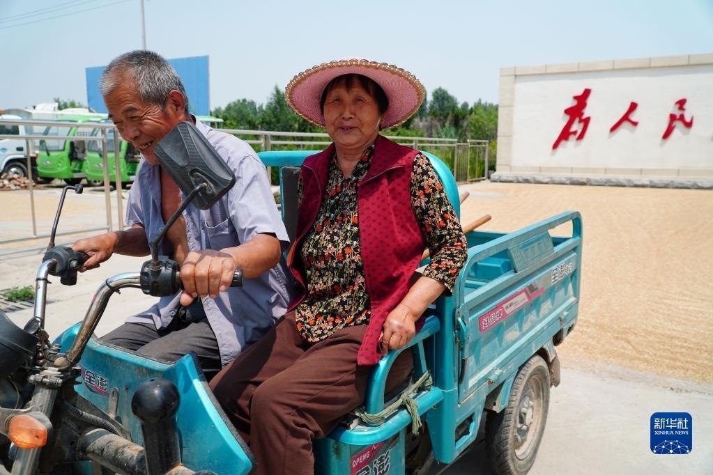 6月13日,農(nóng)戶把剛收獲的小麥運到臨邑縣臨南鎮(zhèn)政府大院晾曬。