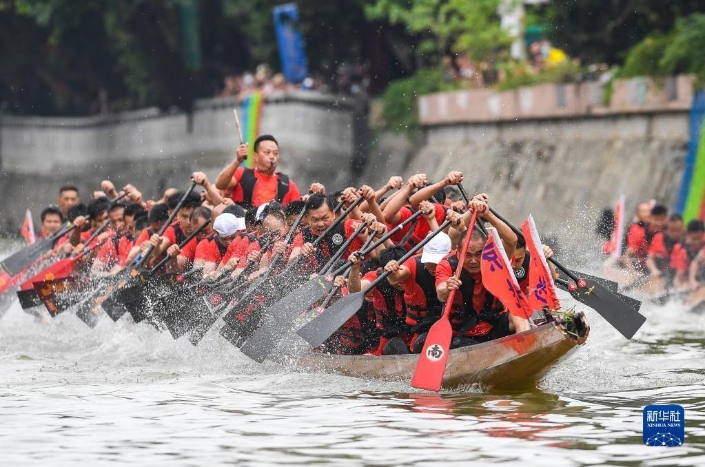 自農(nóng)歷四月初八“起龍舟”開始,廣州地區(qū)就開啟了劃龍舟、迎端午的年度大戲。6月15日,車陂村12條龍船在車陂涌進(jìn)行龍舟競(jìng)渡。