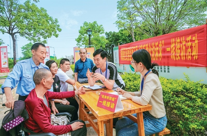 2023年5月24日,福建省莆田市城廂區(qū)紀(jì)委監(jiān)委在東海鎮(zhèn)大埔村開(kāi)展“我聽(tīng)群眾說(shuō)訴求”一線接訪活動(dòng)。 求是圖片 吳震/攝