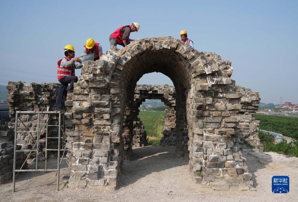 近日,河北省秦皇島市山海關(guān)區(qū)山海關(guān)長(zhǎng)城保護(hù)展示工程——腰鋪9號(hào)敵臺(tái)和51號(hào)墻臺(tái)馬道保護(hù)修繕工程施工穩(wěn)步推進(jìn)。據(jù)介紹,腰鋪9號(hào)敵臺(tái)和51號(hào)墻臺(tái)馬道是山海關(guān)長(zhǎng)城軍事防御體系中重要的附屬設(shè)施。修繕工程預(yù)計(jì)7月底完工。新華社記者 楊世堯 攝