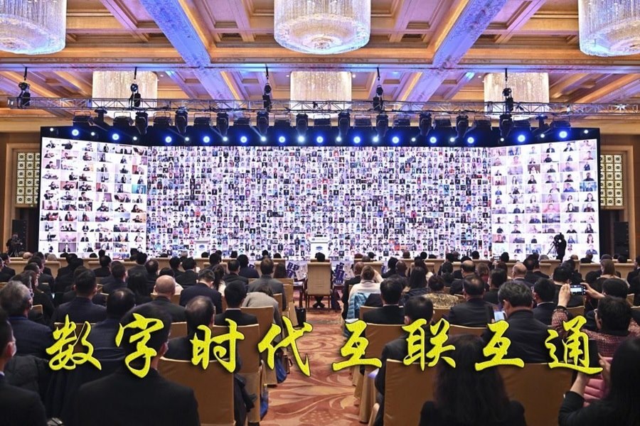 在北京舉行的世界數(shù)字教育大會(huì)上,全球萬(wàn)名師生云合奏合唱(2023年2月13日攝)。世界數(shù)字教育大會(huì)以“數(shù)字變革與教育未來(lái)”為主題,超過(guò)130個(gè)國(guó)家和地區(qū)的代表參會(huì)。