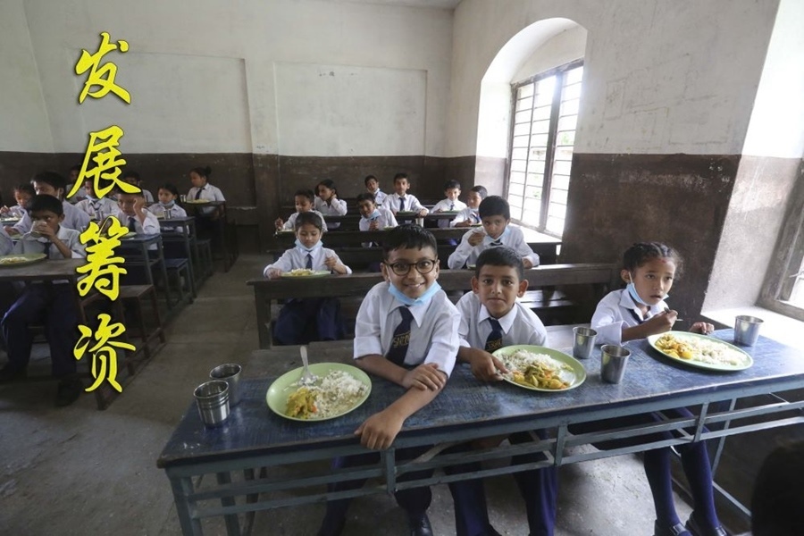 在尼泊爾加德滿都,學(xué)生們參加微笑兒童項(xiàng)目啟動(dòng)儀式并就餐(2022年7月11日攝)。由“全球發(fā)展和南南合作基金”支持的微笑兒童項(xiàng)目惠及約3600名尼泊爾學(xué)生,解決學(xué)生就餐問(wèn)題。