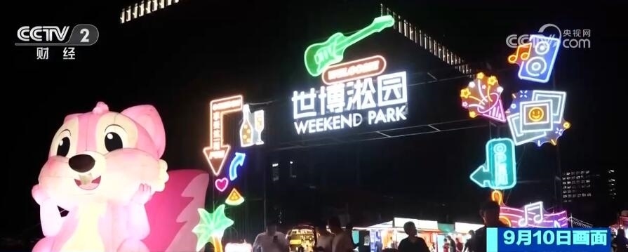 在我身后有一只非??蓯?ài)的小松鼠,它的名字叫做“淞淞”,也是本次世博淞園集市設(shè)計(jì)的代表的卡通形象。我也注意到,隨著夜幕的降臨,集市的人流在逐漸地增加。像平時(shí)工作日,每天的客流量可能在三四千人,到了周末會(huì)增加到一萬(wàn)人以上。集市的占地面積大約是7000平方米,集合了咖啡美食、潮流戶外運(yùn)動(dòng)、露營(yíng)以及文創(chuàng)產(chǎn)品等的各大板塊,力求打造一場(chǎng)獨(dú)具品質(zhì)、同時(shí)又容納多種元素的嘉年華的場(chǎng)景。