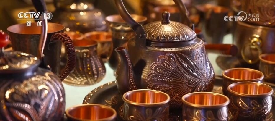總臺(tái)記者 劉菲:如今的古城最吸引人們的并非熱鬧的商業(yè)街,而是一個(gè)個(gè)非物質(zhì)文化遺產(chǎn)的手工制作,現(xiàn)在在古城里有20多種的非遺制作。在很多年前我曾經(jīng)來過這里,這里就是一個(gè)小小的鐵匠鋪,而如今再來到這兒,已經(jīng)變成了一個(gè)打鐵技藝的展示館。小到一個(gè)湯勺,大到生產(chǎn)農(nóng)具,聽著這打鐵的聲音,也仿佛把我?guī)Щ亓水?dāng)年。