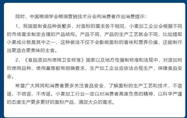 ·面粉添加“科技與狠活”?中國糧油學會營銷技術(shù)分會辟謠:與事實不符。