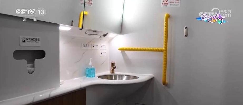 動車組的4號車廂為無障礙車廂,有無障礙衛(wèi)生間、輪椅存放區(qū),還有盲文標識以及相應的設(shè)施設(shè)備,為乘客提供無障礙出行服務。